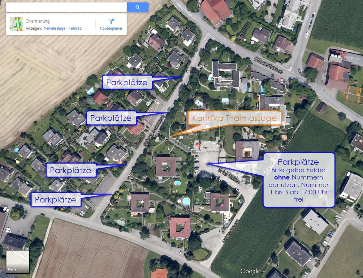Meine Praxis befindet sich in einem ruhigen Ortsteil von Schwerzenbach. Es sind genügend Parkplätze in unmittelbarer Nähe vorhanden. Am besten parkieren Sie an der Schuepisstrasse, von da findet sich ein direkter Zugang.